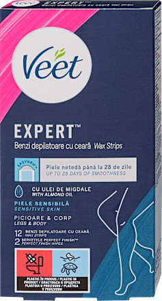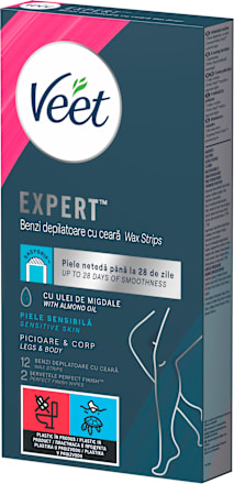 A Veet Expert Hideggyanta szalagok érzékeny bőrre még a legrövidebb szőrszálakat* is hatékonyan megfogják és eltávolítják. A gyantacsíkok a tövétől távolítják el a szőrszálat és akár 28 napig tartó simaságot biztosítanak. Az Easy-Gel™ gél formulának köszönhetően a gyanta nem tapad a bőrhöz, kellemes érzést biztosít, a mandulaolaj pedig megnyugtatja és jó illatúvá teszi a bőrt. 12 db-os kiszerelés.
